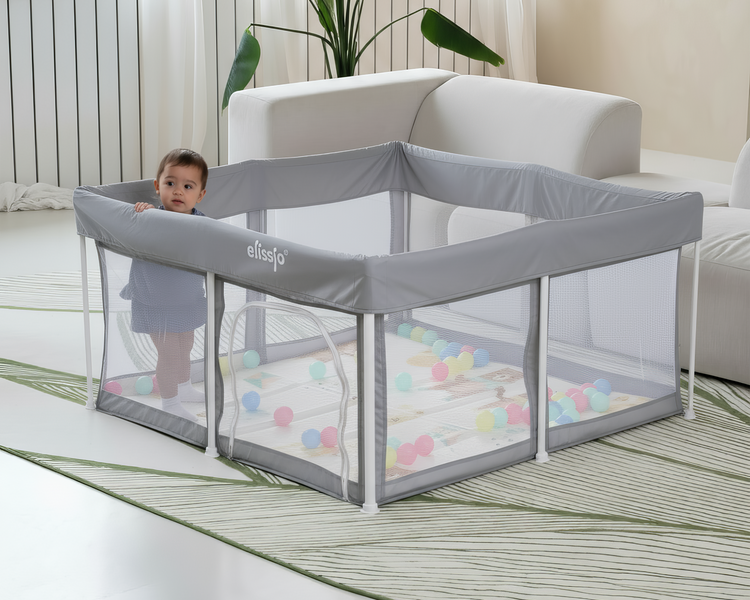 De Elissio grondbox is met zorg ontworpen om jouw kindje een veilige en rustige plek te bieden om te spelen, ontdekken en groeien.